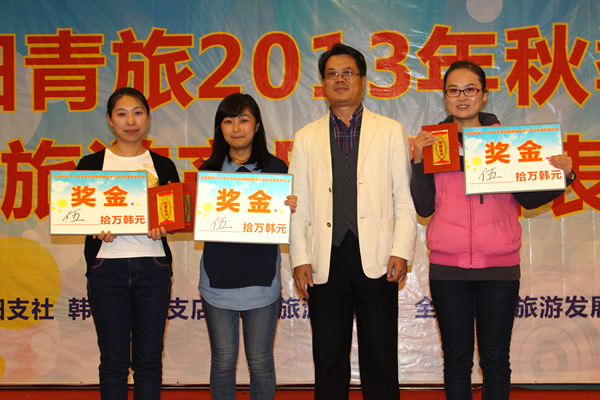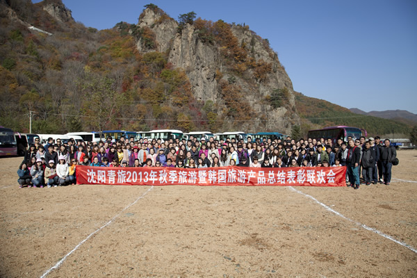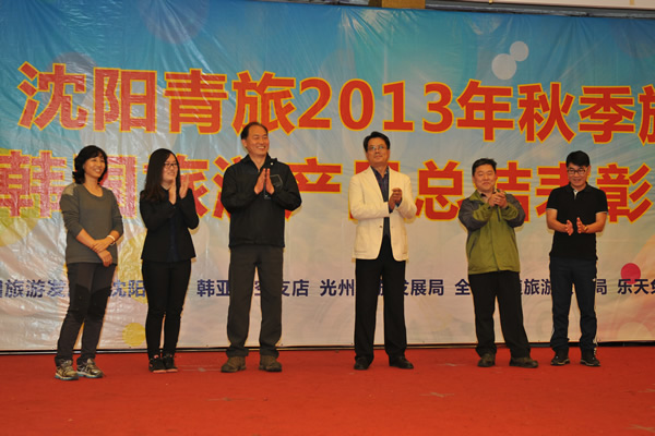 2013年10月12日-13日,沈陽青旅2013年秋季旅游暨韓國旅游產(chǎn)品總結(jié)表彰聯(lián)歡會在本溪關(guān)門山、同泉溫泉度假村舉行。韓國旅游發(fā)展局社長樸正夏、韓亞航空支店長金珍、韓國欣欣旅行社總經(jīng)理金龍渙、韓國新羅免稅店所長金東元、韓國樂天免稅店劉康妮等韓國各界領(lǐng)導、同業(yè)及友人到會同慶。