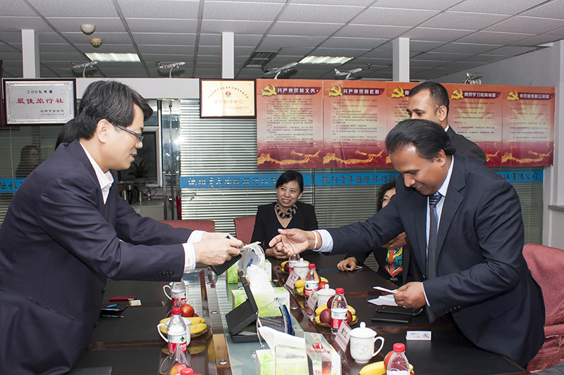 5月20日晚七時許,Silva市長一行來到了沈陽青旅會議室和倪琛善先生進行會晤,倪琛善先生首先通過翻譯向Silva市長談了自己在斯里蘭卡考察歸來后的感受,對Silva市長辦公室的干凈整潔給予了極高的贊譽。高爾市作為錫蘭紅茶的重要產(chǎn)地,Silva市長更是對倪琛善先生準備的西湖龍井贊不絕口。短暫的交流過后,雙方對沈陽和高爾兩市的旅游合作展開了深入探討,一致認為作為友好城市,兩市的旅游市場有著良好的發(fā)展前景,豐富的旅游資源激發(fā)了更加廣闊的旅游市場開發(fā),如今的中斯兩國旅游已朝向更高水平的品牌化發(fā)展,沈陽赴斯里蘭卡的旅游更應(yīng)將游客把目光從科倫坡引向文化古城高爾市。會議在愉快的氛圍中進行,現(xiàn)場不時發(fā)出會心的笑聲。陪同參加會議的還有高爾市市長秘書Pradeep Ehan先生和沈陽青旅總經(jīng)理助理狄子健女士。